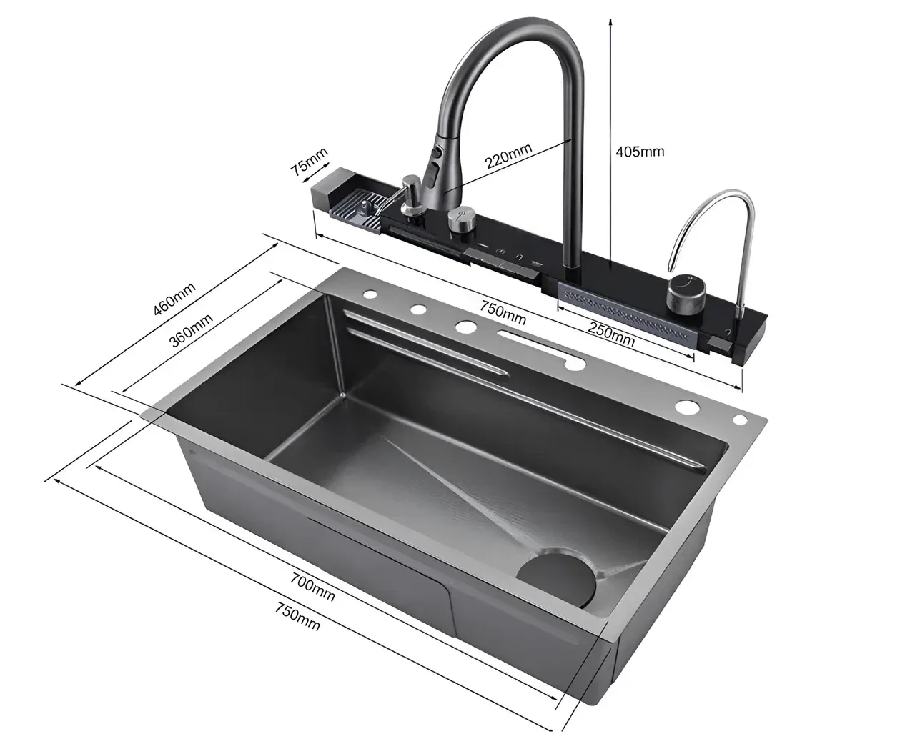 Мойка кухонная Ceruttispa GLORIA nano black CT10356 многофункциональная серая купить