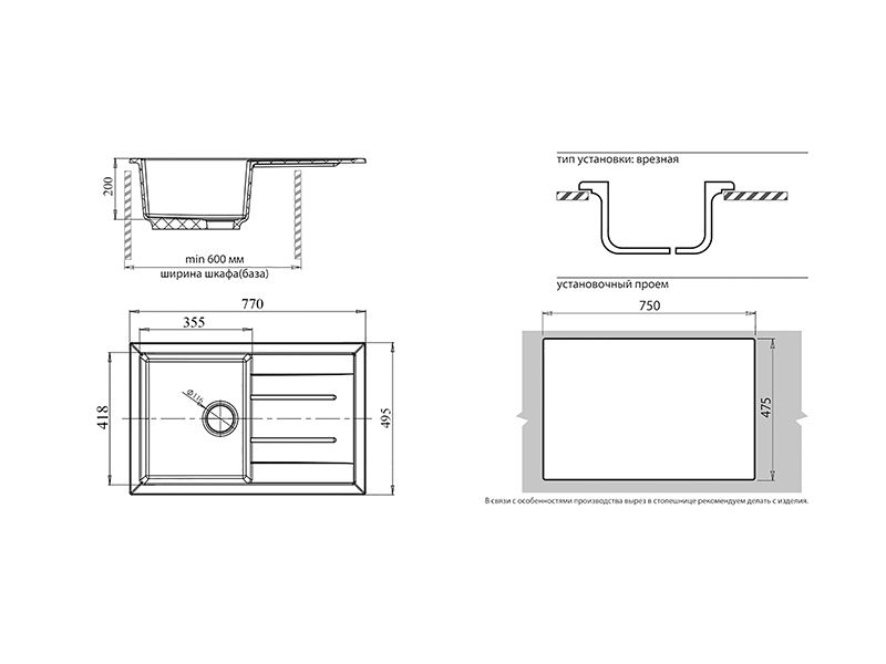 Установочный проем: 750х475 мм