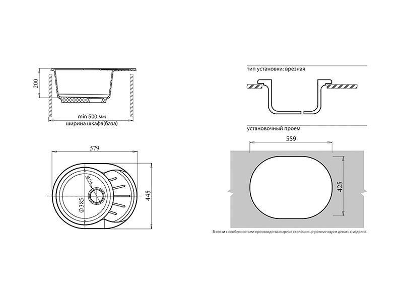 Установочный проем: 559*425 мм