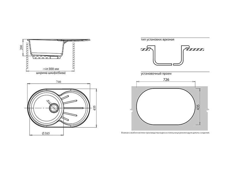 Установочный проем: 726х435 мм