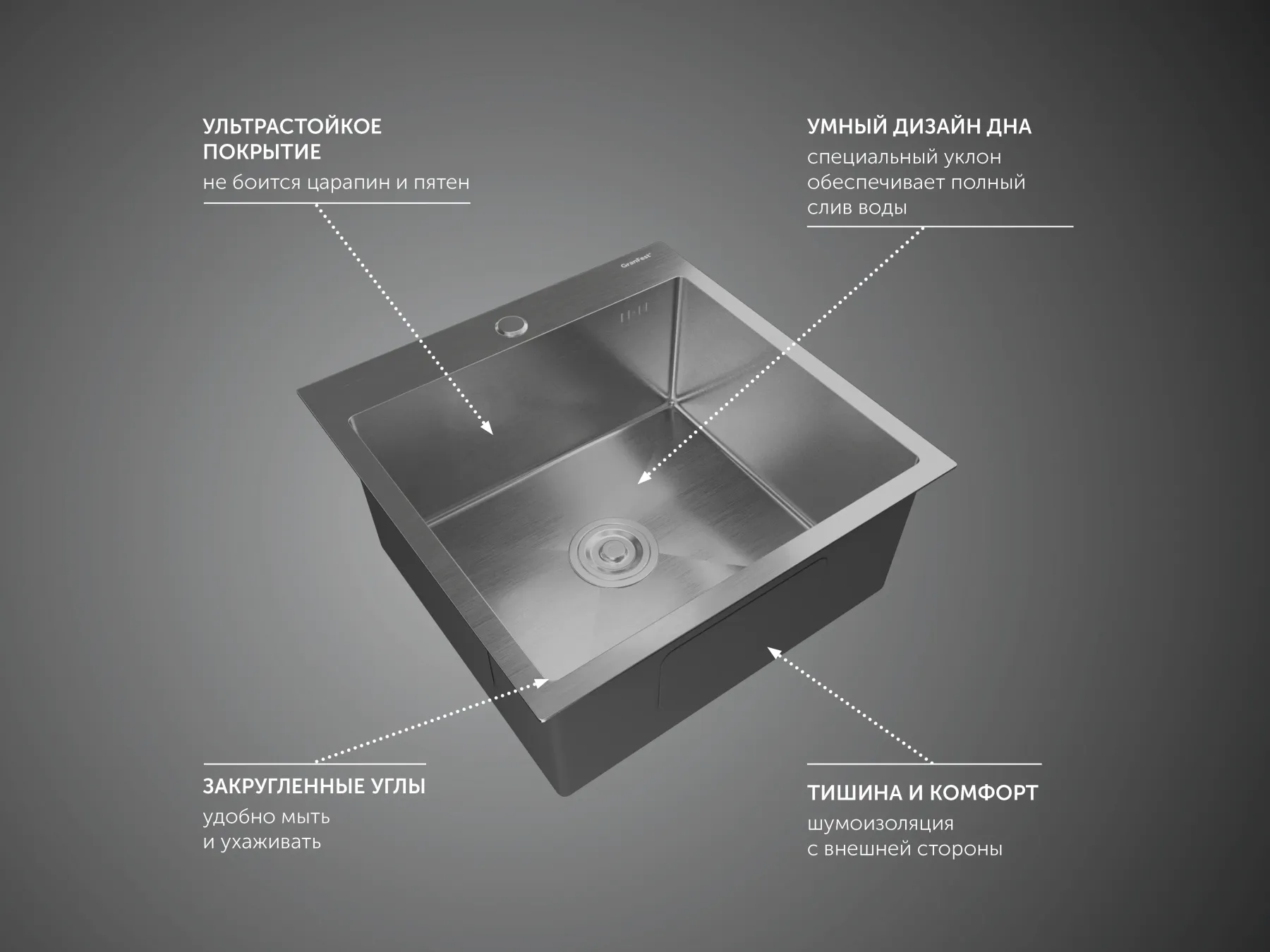 Мойка кухонная GranFest METAL 5050 нерж Нержавеющая сталь купить