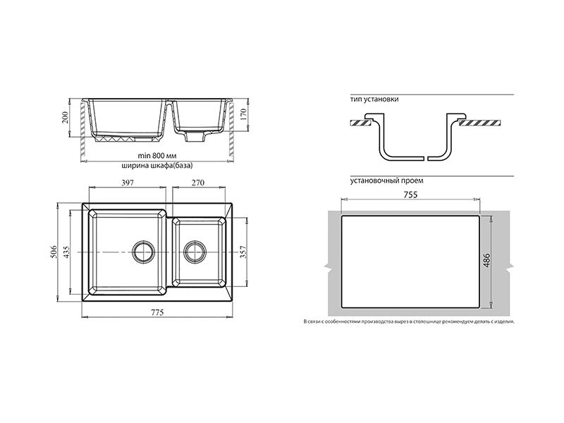 Установочный проем: 755х486 мм