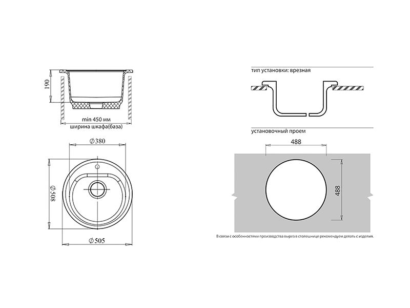 Установочный проем: 488 мм