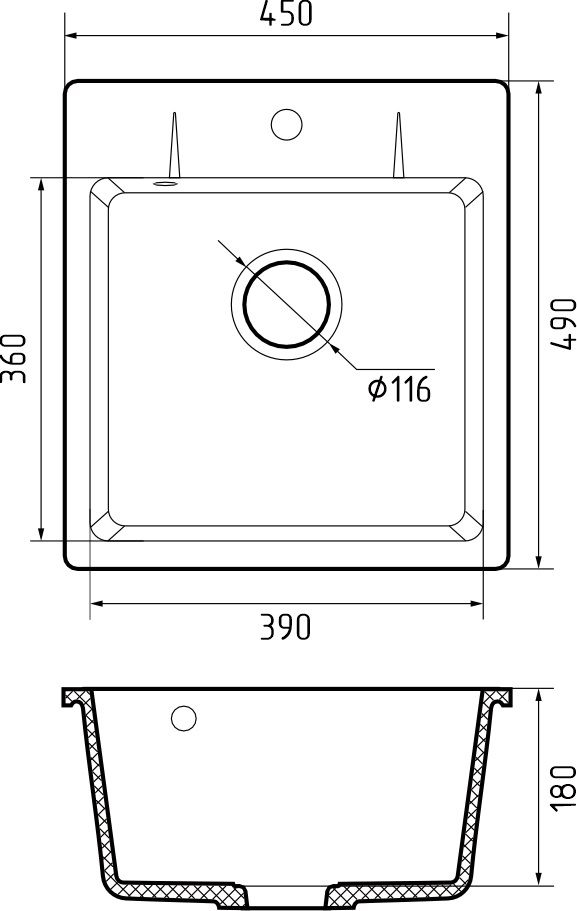 Комплектация: сливная арматура с корзинчатым вентилем (Ø 3.5""/90 мм), тех.паспорт, гарантийный талон."