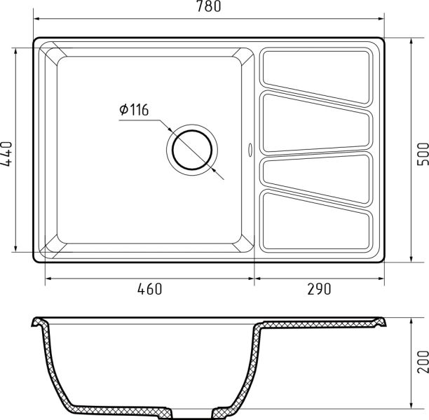 Мойка кухонная GranFest VERTEX V-780L иней