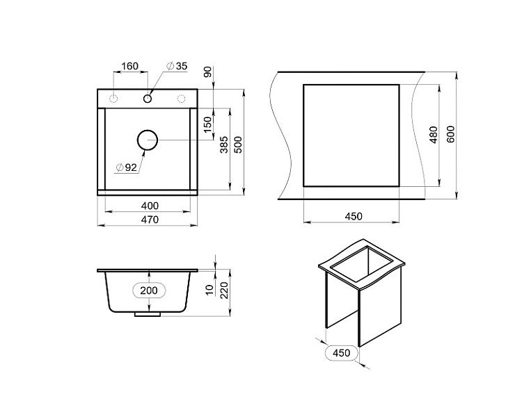 Сифон с отводом для бытовой техники, разделочная доска (ясень)