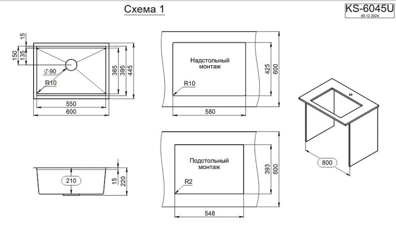 Монтаж:встраиваемая сверху