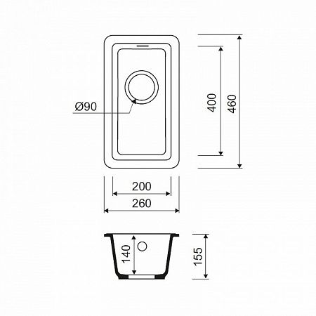 Мойка для подстольного монтажа. Материал: Granucryl. Белая. Размер 260*460 мм.