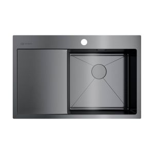 • Гарантия на мойки из нержавеющей стали с PVD-покрытием: 15 лет; • Метод производства: ручная; • Оригинальный цвет: вороненая сталь; • Для врезного и монтажа вровень со столешницей; • Японская высококачественная хромоникелевая нержавеющая сталь с покрытием PVD; • Матовая полировка, устойчивая к появлению царапин; • Упаковка обеспечивает максимально безопасную транспортировку. Мойка упакована в пакет из нетканного материала, уголки из пенопласта, картонную коробку; • Корпус мойки обработан специальным шумоподавляющим составом; • Комплектация: крепление, донный клапан, выпуск, сифон.
