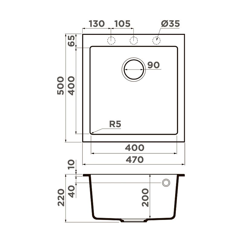 Отверстия под смеситель:нет