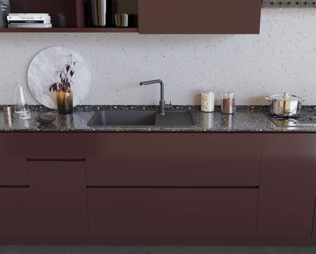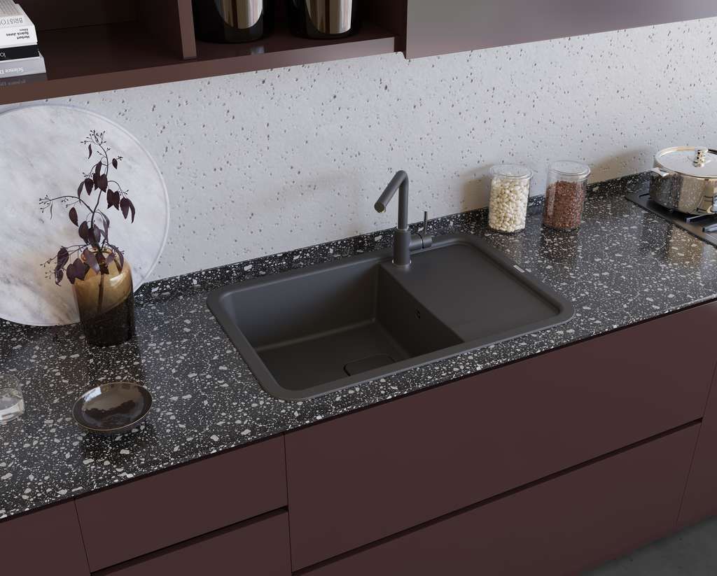 - За счет инновационных добавок в составе композитного материала, ARTGRANIT® имеет гладкую поверхность и очень плотную структуру, не позволяющую каплям жидкости и грязи проникать глубоко внутрь мойки, отталкивая частицы воды.