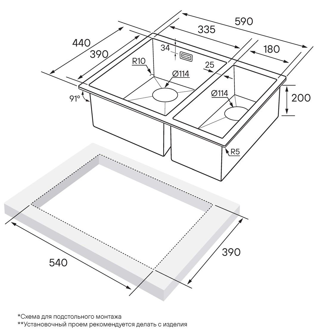 Мойка кухонная из нержавеющей стали, артикул PM545944-BSL304-ая аустенитная нержавеющая сталь имеет низкое содержание углерода. В составе мойки содержится 18% хрома и 8% никеля, что делает данную мойку из нержавеющей стали не подверженной деформации и обеспечивает прекрасные эксплуатационные характеристики.Мойки ANNEX в оттенках BG и GM имеют прочное PVD покрытие, которое нанесено на нержавеющую сталь. Оно особенно устойчиво к появлению царапин и истиранию, не содержит микротрещин и является экологически чистым.Имеет шумопоглощающее покрытие Stille® на внешней стороне чаши;