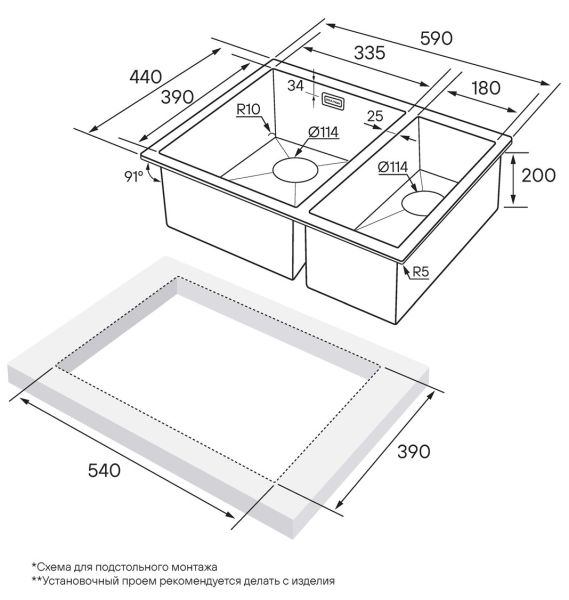 Монтаж:встраиваемая снизу