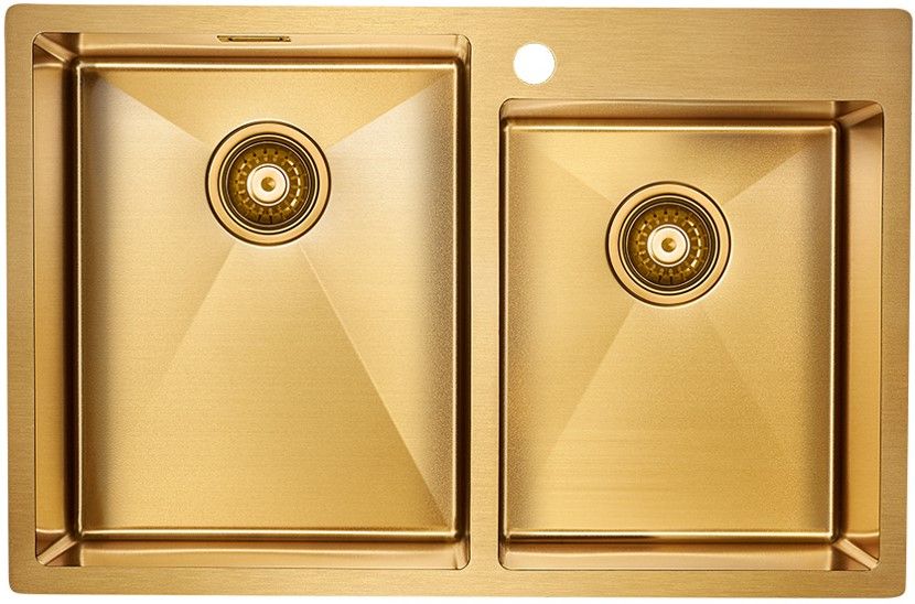 Мойка кухонная из нержавеющей стали, артикул PM517851-BG304-ая аустенитная нержавеющая сталь имеет низкое содержание углерода. В составе мойки содержится 18% хрома и 8% никеля, что делает данную мойку из нержавеющей стали не подверженной деформации и обеспечивает прекрасные эксплуатационные характеристики.Мойки BERMAN в оттенках BG и GM имеют прочное PVD покрытие, которое нанесено на нержавеющую сталь. Оно особенно устойчиво к появлению царапин и истиранию, не содержит микротрещин и является экологически чистым.Имеет шумопоглощающее покрытие Stille® на внешней стороне чаши;