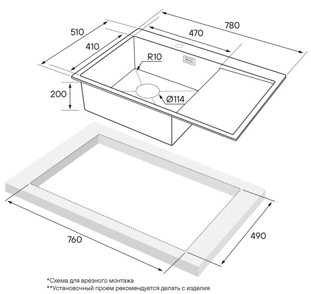 Монтаж:встраиваемая сверху