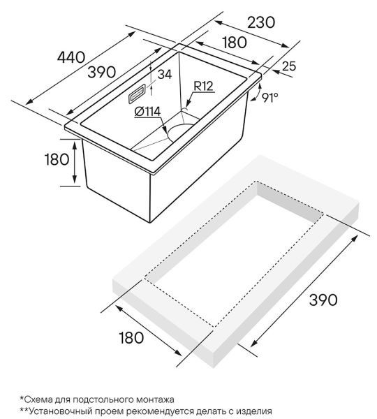 Монтаж:встраиваемая снизу