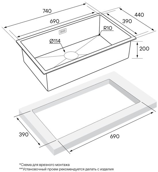 Монтаж:встраиваемая снизу