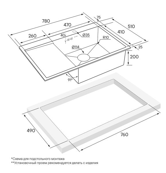 Монтаж:встраиваемая сверху