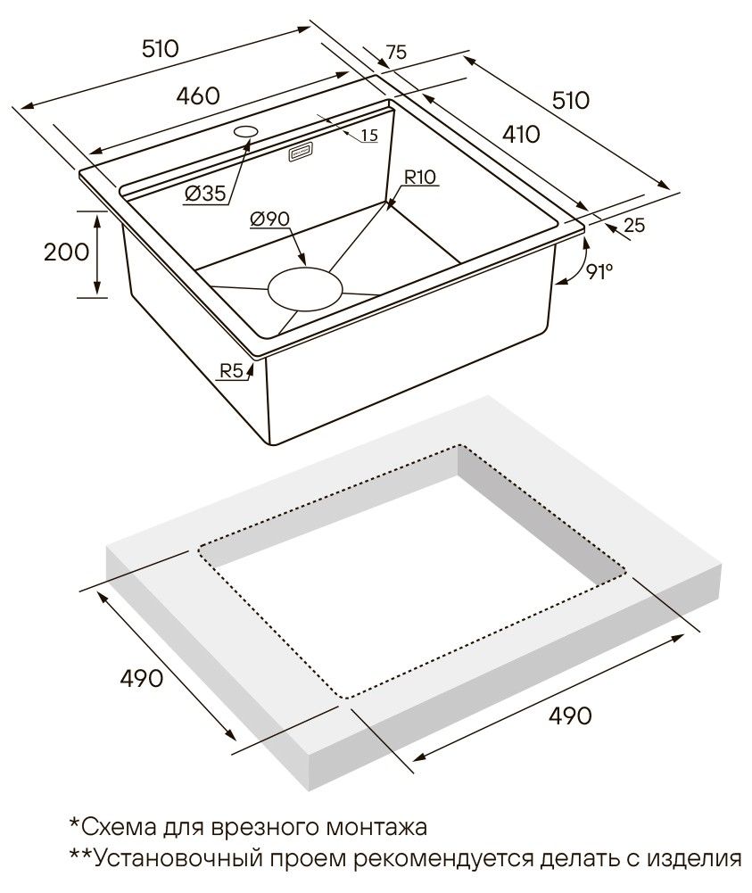Монтаж:встраиваемая сверху