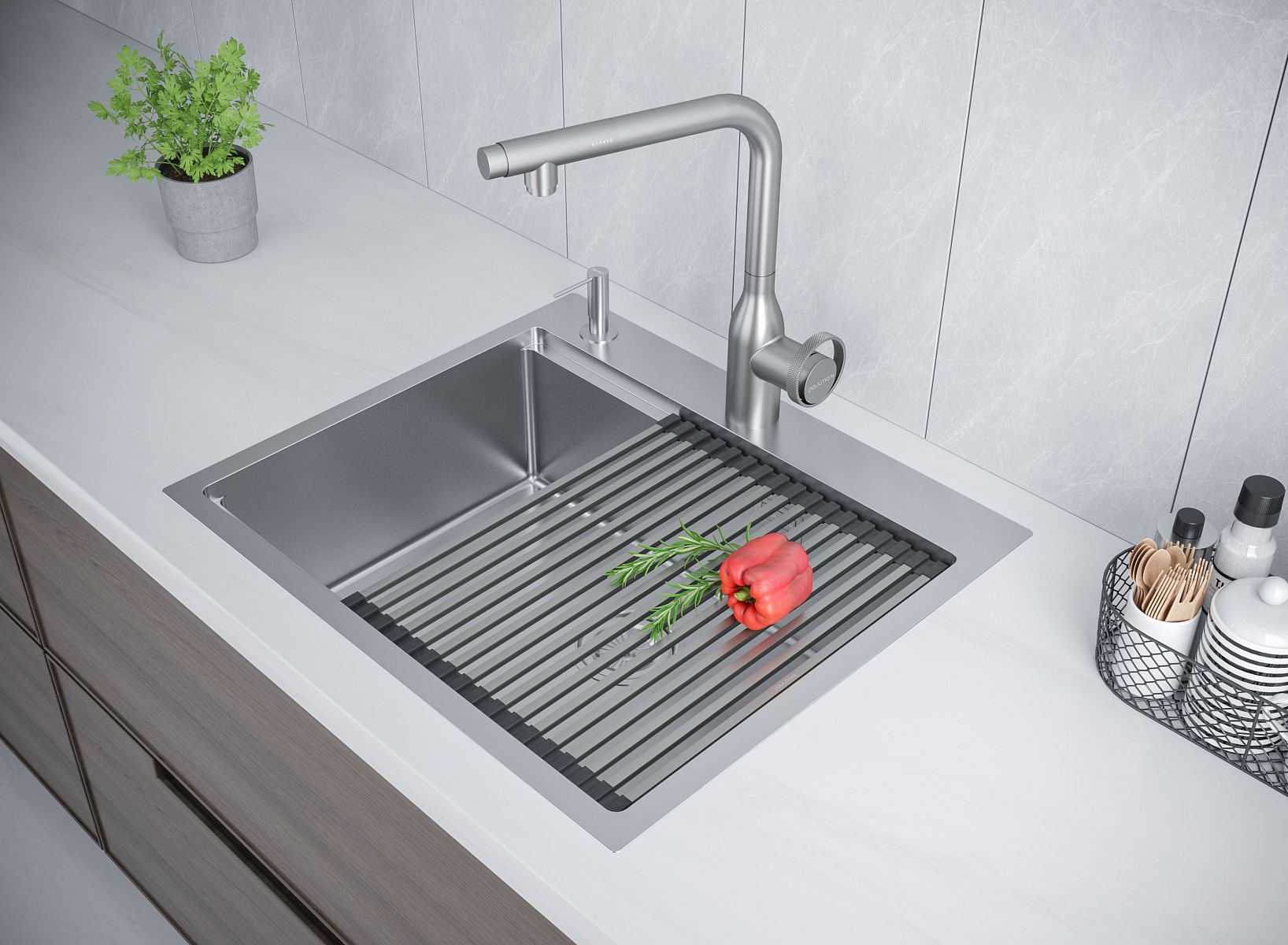 Мойка кухонная из нержавеющей стали, артикул PM705951-BSИзготовлена из нержавеющей стали, обладающей высокой коррозионной стойкостью, большим запасом механической прочности, а также устойчивостью к воздействию кислот и других химически активных соединений.Готовое отверстие для кухонного смесителя и дозатора.Имеет шумопоглощающее покрытие Stille® на внешней стороне чаши;
