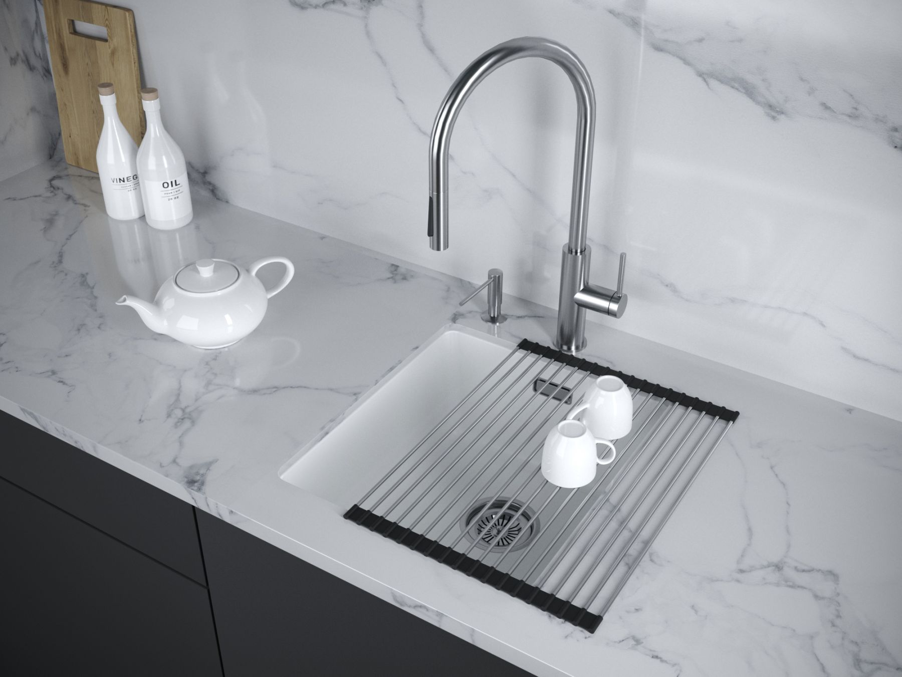 Материал мойки не нужно герметизировать, и, поскольку он не пористый, то он максимально устойчив к окрашиванию.Телескопический сифон