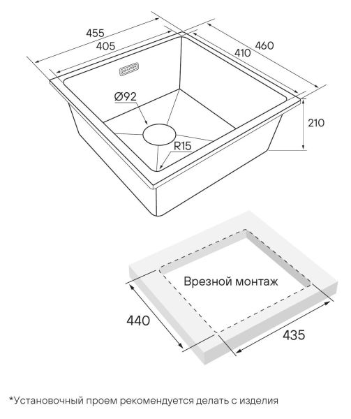 Мойка создана как для современного способа монтажа под столешницу, так и для классического врезного монтажа.Практичная эстетика