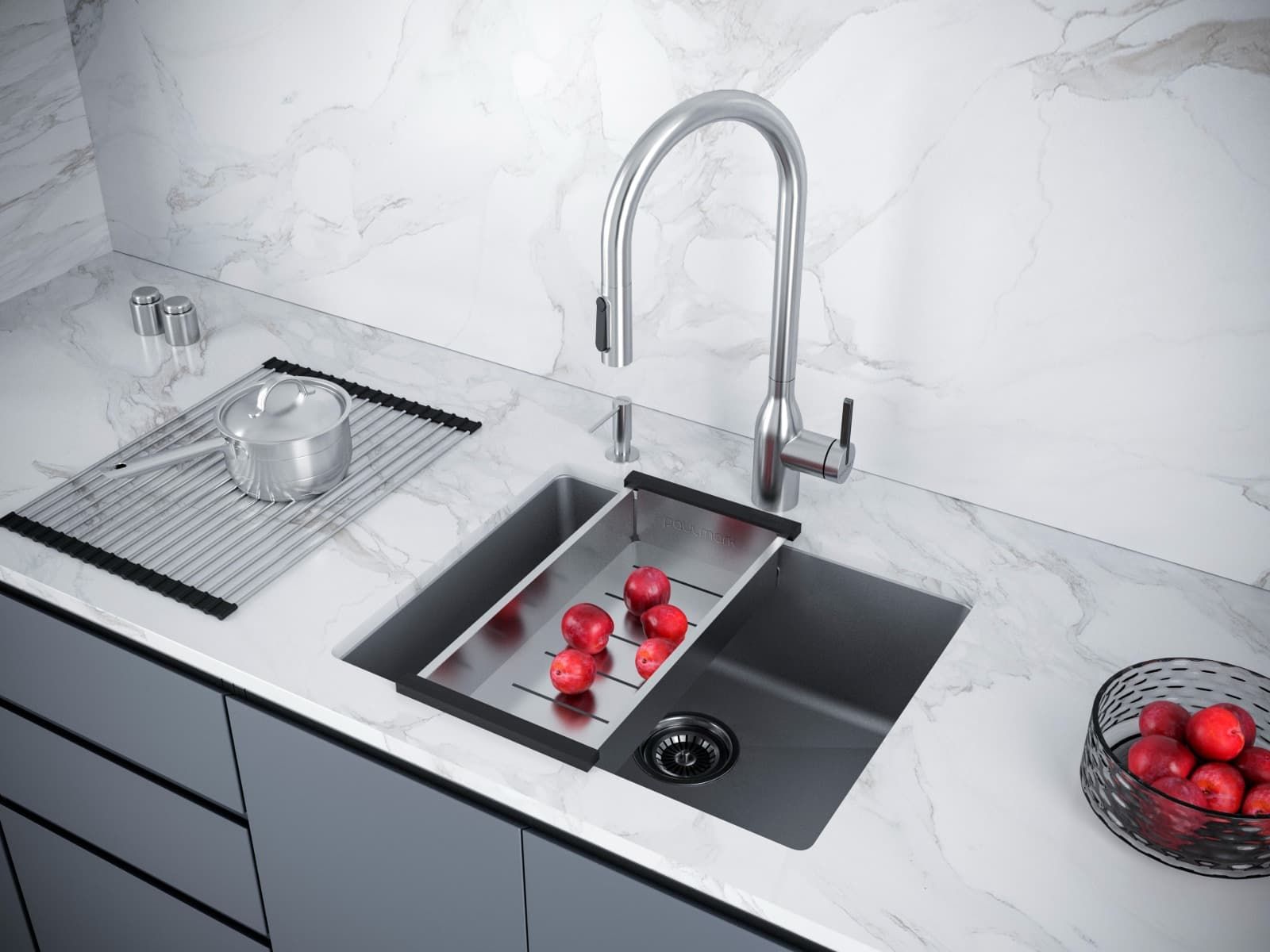 Мойка создана как для современного способа монтажа под столешницу, так и для классического врезного монтажа.Практичная эстетика