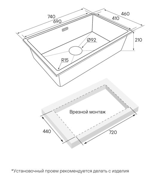 Мойка создана как для современного способа монтажа под столешницу, так и для классического врезного монтажа.Практичная эстетика