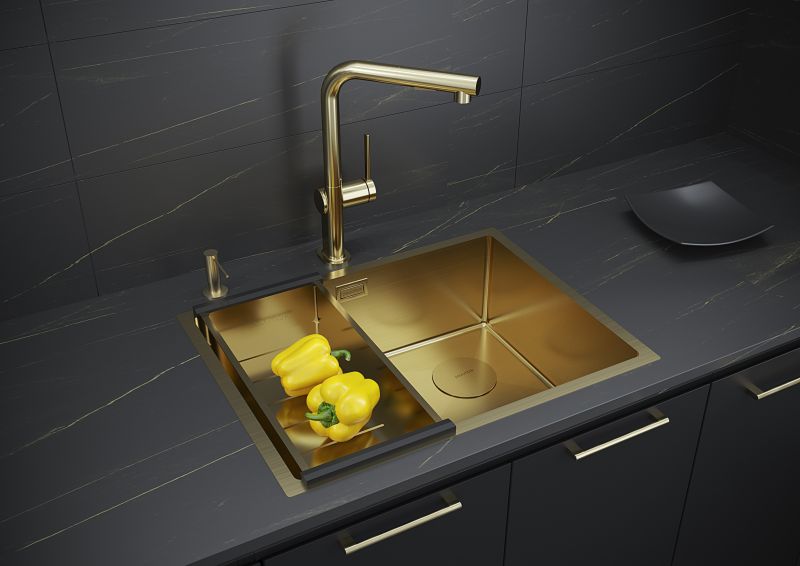 Мойки NEXT-SKEW 580 в оттенках BG и GM имеют прочное PVD покрытие, которое нанесено на нержавеющую сталь. Оно особенно устойчиво к появлению царапин и истиранию, не содержит микротрещин и является экологически чистым.