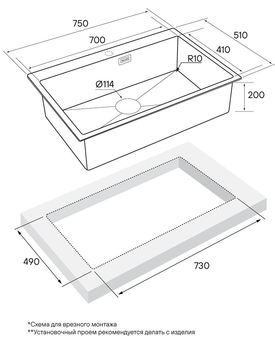 Монтаж:встраиваемая сверху