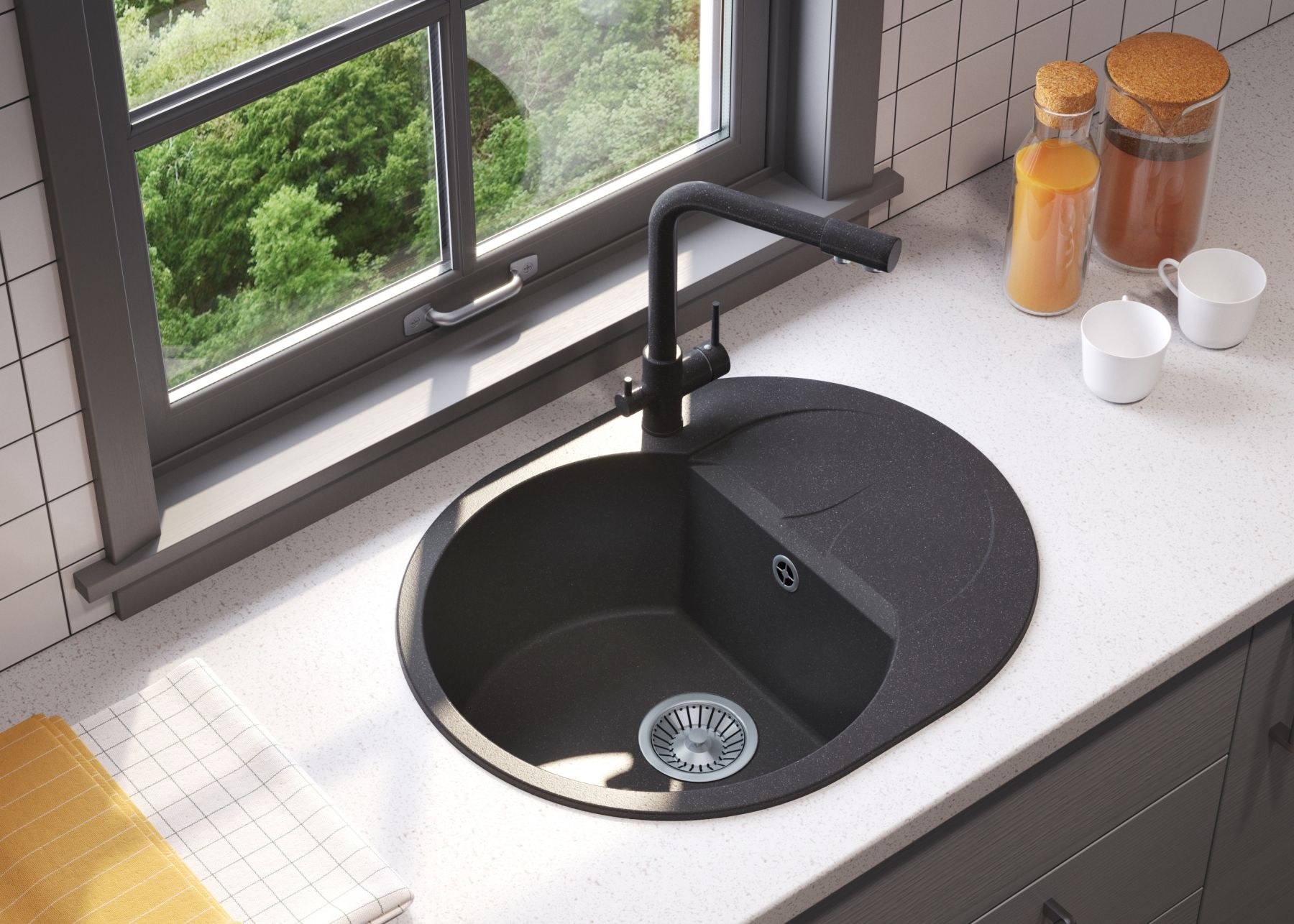 С целью улучшения физико-механических свойств моек и улучшения эстетического вида, на кухонные мойки Полигран наносится гелькоутное покрытие. После обработки на их поверхности образуется красивый полуглянцевый слой, за счет которого мойки послужат более 10 лет без потери внешнего вида и своих прочностных свойств.