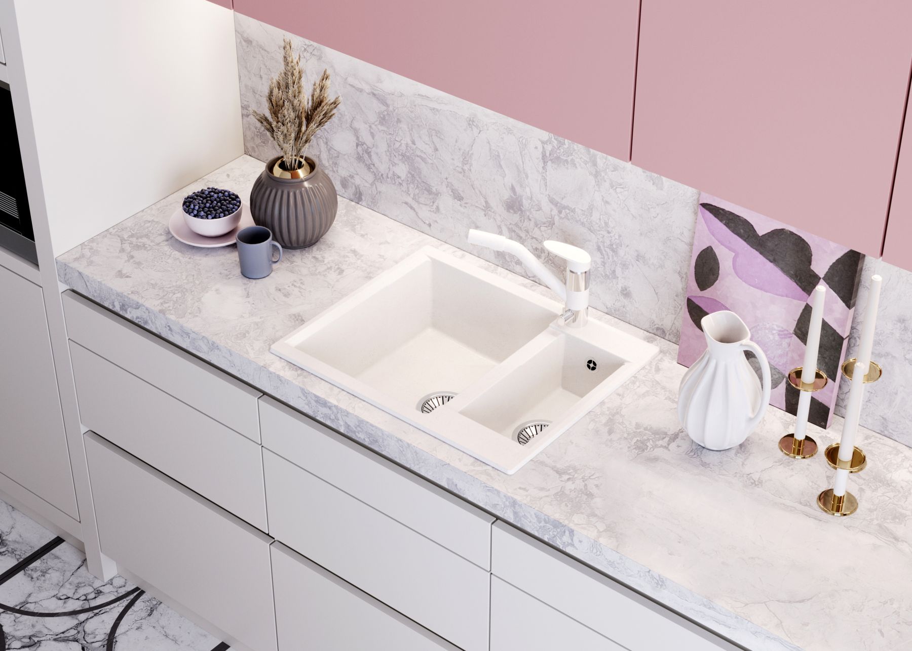 Мойка кухонная Polygran BRIG-620 белый хлопок 473394 купить