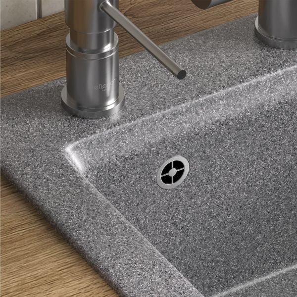 В мойке предусмотрено отверстие для установки смесителя. Используя алмазную коронку, можно сделать дополнительные отверстия для дозатора жидкого мыла или сифона с полуавтоматом.