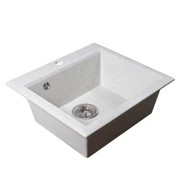 В мойке предусмотрено отверстие для установки смесителя. Используя алмазную коронку, можно сделать дополнительные отверстия для дозатора жидкого мыла или сифона с полуавтоматом.