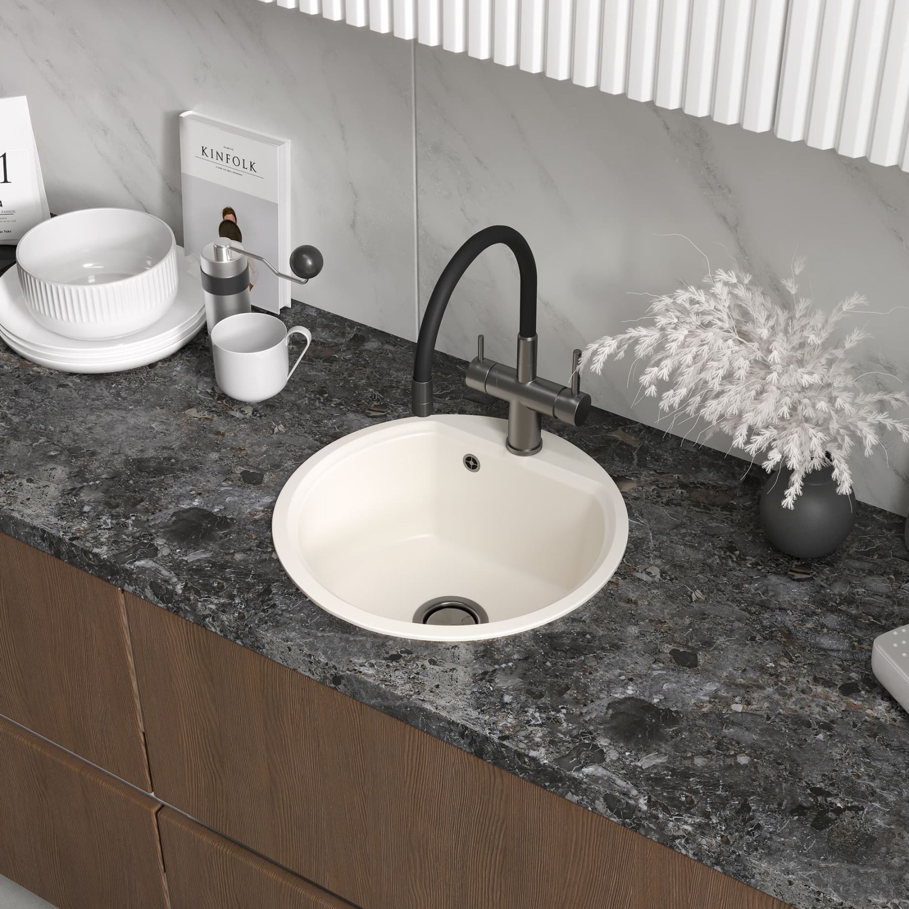 Удобная вместительная мойка подходит для установки как в угловой шкаф кухни, так и в прямые модули.