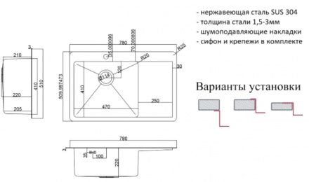 Мойка кухонная Zorg : чаша мойки выполнена из высококачественной легированной нержавеющей стали с последующей специальной PVD-обработкой в цвете сталь. Данная модель прочная, устойчивая к царапинам, способна выдерживать высокие температуры. Функционально дополнит интерьер кухни. Конструкция призвана заметно облегчить привычные дела – от мытья посуды до разморозки продуктов. Сверху нанесено покрытие, которое придает глубокий цвет и обеспечивает защиту от преждевременного истирания. Толщина нержавеющей стали 1,5–3 мм и шумоподавляющие накладки делают модель практически бесшумной.