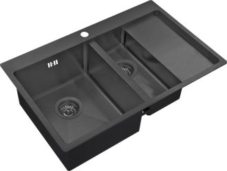 Мойка кухонная Zorg : чаша мойки выполнена из высококачественной легированной нержавеющей стали с последующей специальной PVD-обработкой в цвет графит. Данная модель прочная, устойчивая к царапинам, способна выдерживать высокие температуры. Форма: прямоугольная, цвет мойки -графит. Функционально дополнит интерьер кухни. Конструкция призвана заметно облегчить привычные дела – от мытья посуды до разморозки продуктов. Сверху нанесено покрытие, которое придает глубокий цвет и обеспечивает защиту от преждевременного истирания. Толщина нержавеющей стали 1,5–3 мм и шумоподавляющие накладки делают модель практически бесшумной.