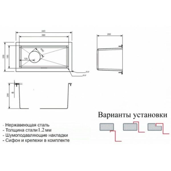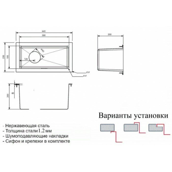 Монтаж:встраиваемая сверху