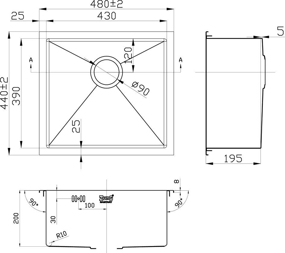 Мойка кухонная Zorg : чаша мойки выполнена из высококачественной легированной нержавеющей стали с последующей специальной PVD-обработкой в цвет сталь. Данная модель прочная, устойчивая к царапинам, способна выдерживать высокие температуры. Функционально дополнит интерьер кухни. Конструкция призвана заметно облегчить привычные дела – от мытья посуды до разморозки продуктов. Сверху нанесено покрытие, которое придает глубокий цвет и обеспечивает защиту от преждевременного истирания. Толщина нержавеющей стали 1,5–3 мм и шумоподавляющие накладки делают модель практически бесшумной.