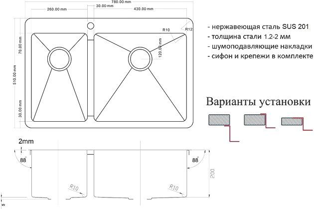 Мойка кухонная Zorg Light ZL R 780-2-510-R купить