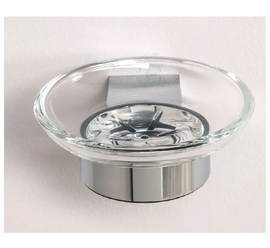 Мыльница для ванной комнаты Aquanet 5685 из прозрачного стекла круглой формы имеет очень простое с одной стороны и вместе с тем оригинальное дизайнерское решение. Предусмотренное для нее массивное крепление к стене перетекает в широкое кольцо, в котором надежно установлена прозрачная емкость для мыла словно маленькая тарелочка. Такой вариант мыльниц, когда стекло устанавливается на подставке из металла, покрытого хромом, считается самым надежным. Они изящно смотрятся, легко моются, ими удобно пользоваться.