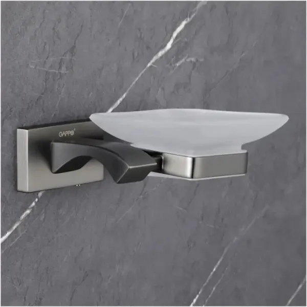 Мыльница Gappo G0702-9 изготовлена из стекла, держатель из латуни, в цвете оружейная сталь. Мыльница G0702-9 – изящный и практичный аксессуар для ванной комнаты. Мыльница подвесная, крепится к стене около раковины или умывальника, подходит для стандартного куска твердого мыла. Предназначена для хранения мыла, а также выполняет декоративную функцию в ванных комнатах.