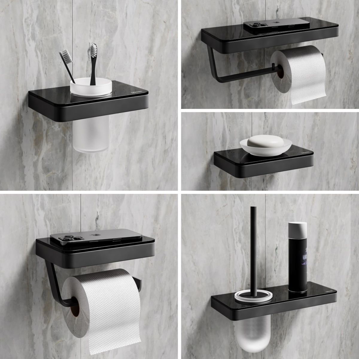 Коллекция представлена в трёх основных цветах: универсальный хром, трендовый чёрный матовый и графит, прекрасно дополнит интерьер ванной и туалетной комнаты, а также добавит функциональности Вашему помещению. Идеально сочетается с сериями смесителей LEMARK в аналогичных цветах.