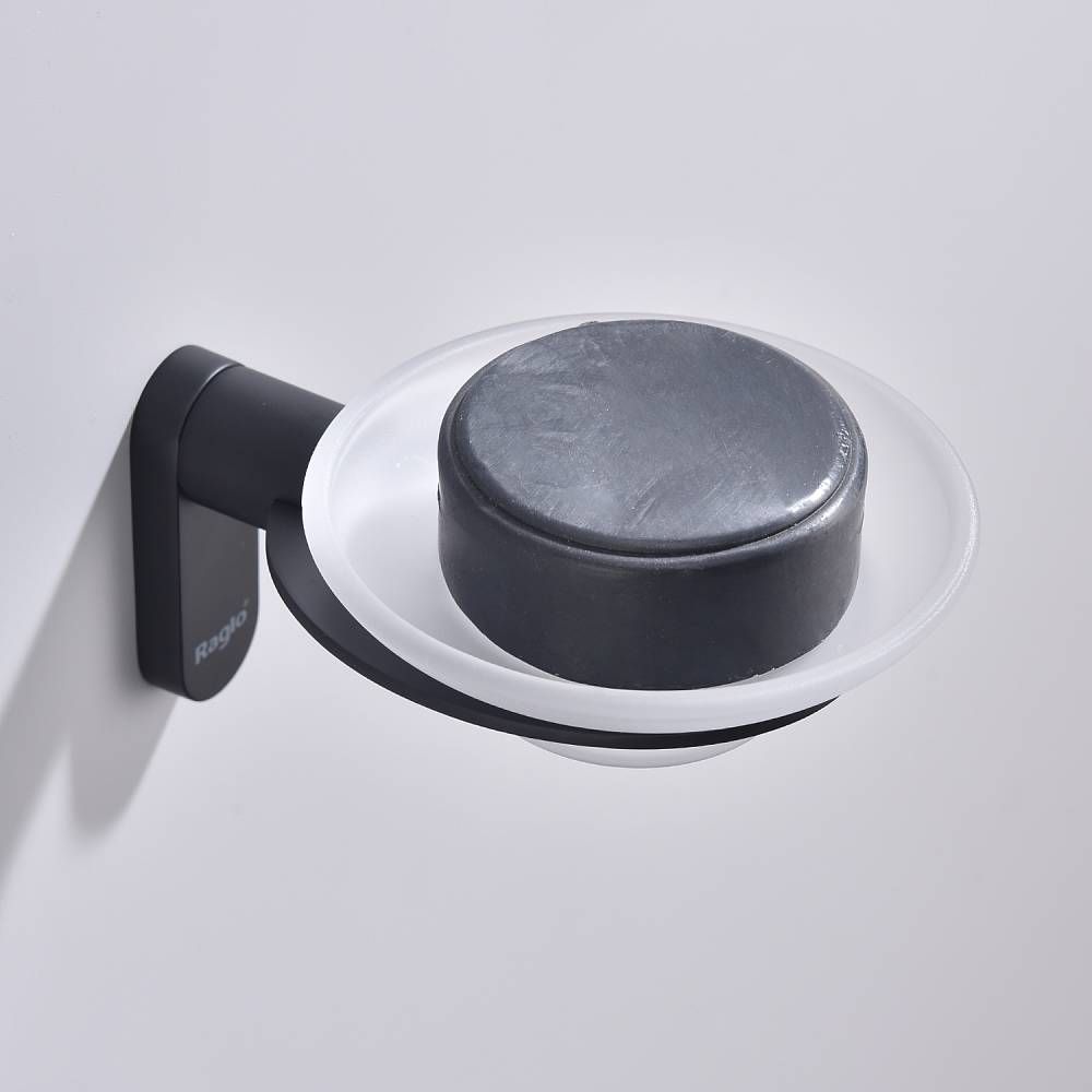 Raglo R300.02.09 Мыльница стеклянная с держателем. Форма округлая, цвет - графит, полуматовое покрытие. Крепление в комплекте.