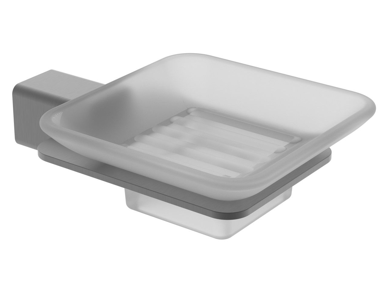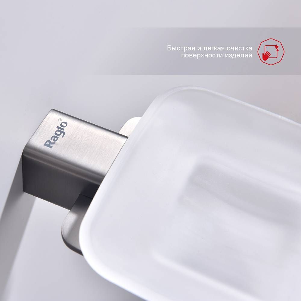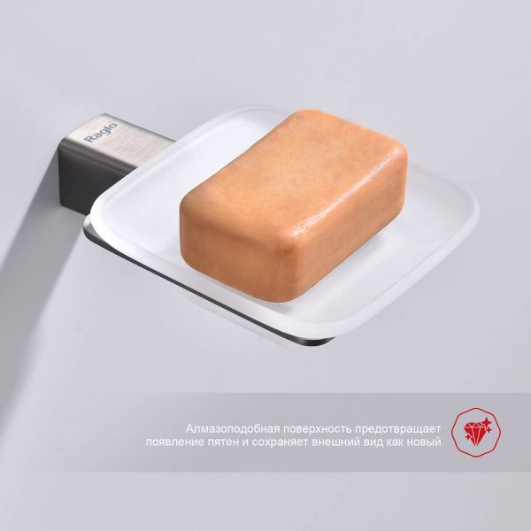 Raglo R301.02.09 Мыльница стеклянная с держателем. Форма квадратная, цвет - графит, полуматовое покрытие. Крепление в комплекте.