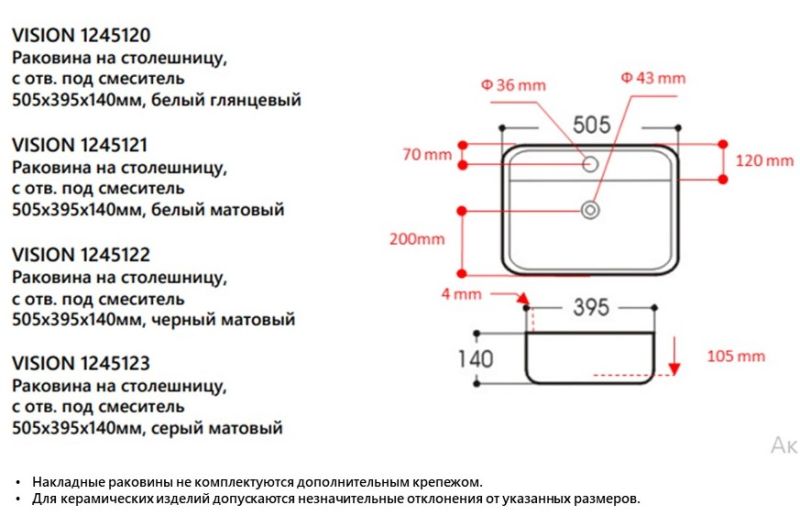 Накладная раковина Avimano Vision 1245121 50см белый матовый Накладная раковина Avimano Vision 1245121 50см белый матовый Казань 7102.10 {old_price} Avimano