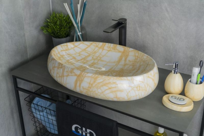 Керамическая раковина накладная Gid Mnc167 под камень без отверстия под смеситель привлекает удобством и простотой монтажа. Продукт выполнен из эколгоичных и безопасных матриалов.