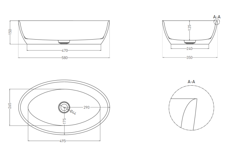 Накладная раковина Salini Alda 01 S-Sense 110611GRH 58см RAL снаружи купить