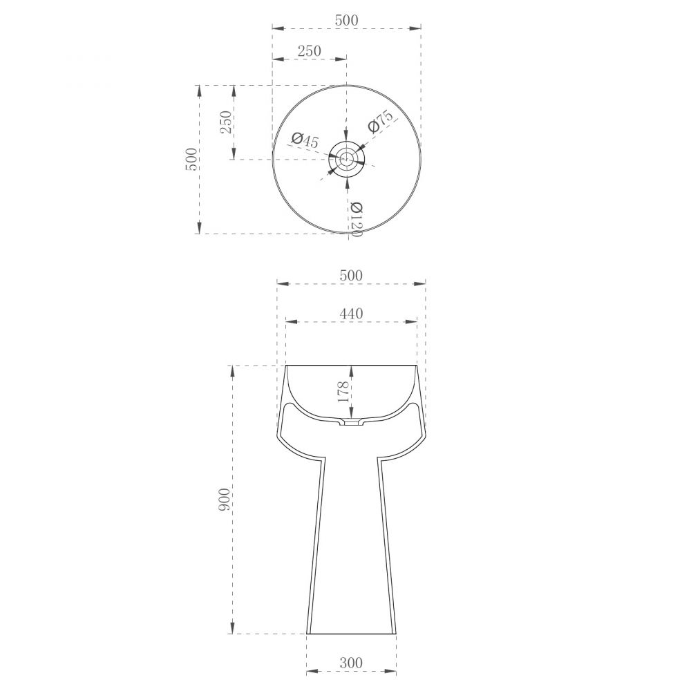 Напольная раковина ABBER Kristall AT2706White-Onyx 50см белый/чёрный купить