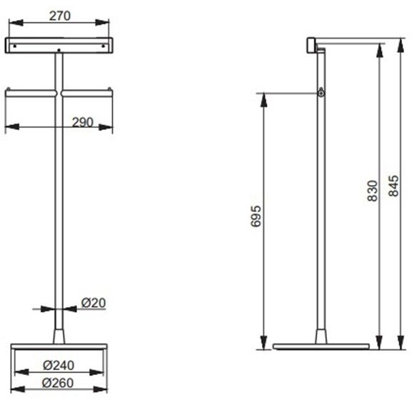 Стойка для пульта управления с 2 держателями для туалетной бумаги, 260x260x845мм, напольная, Цвет: хром